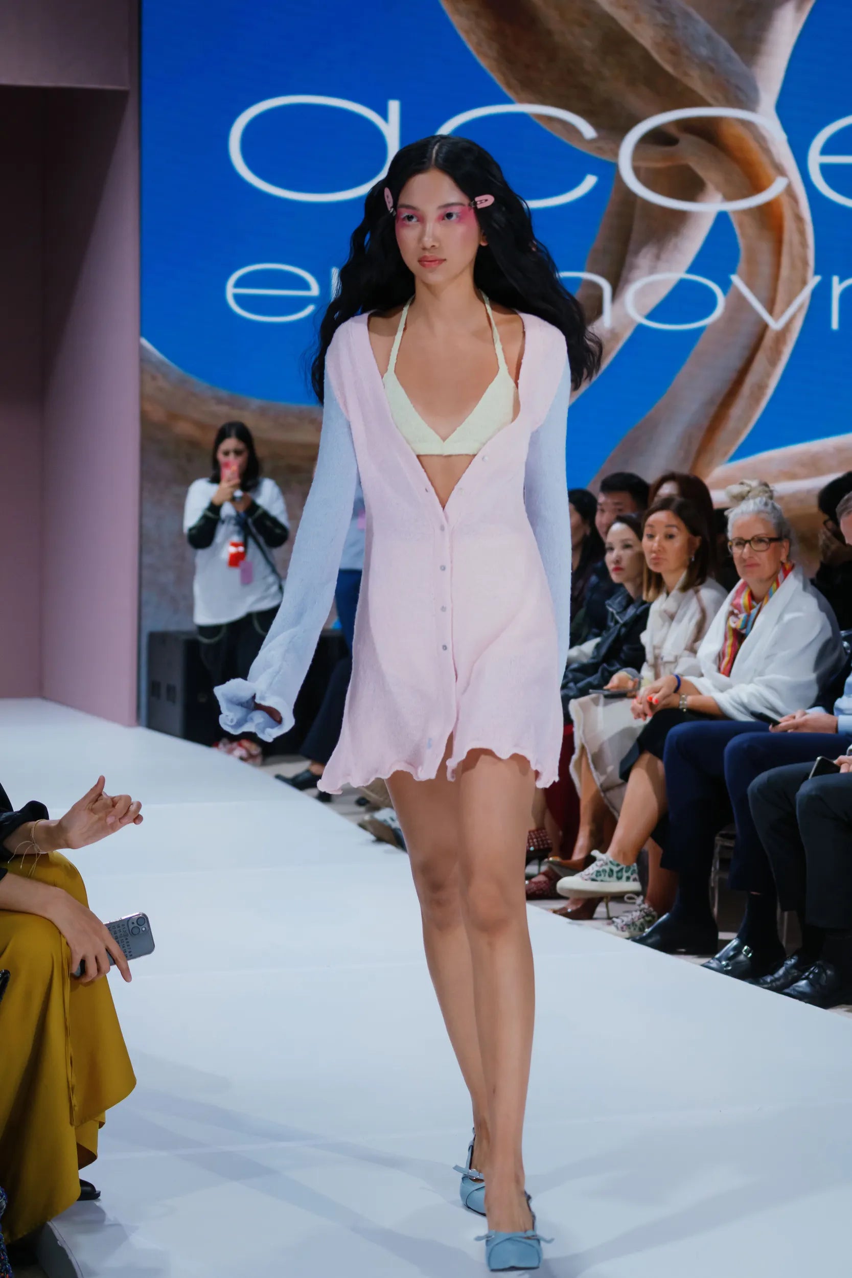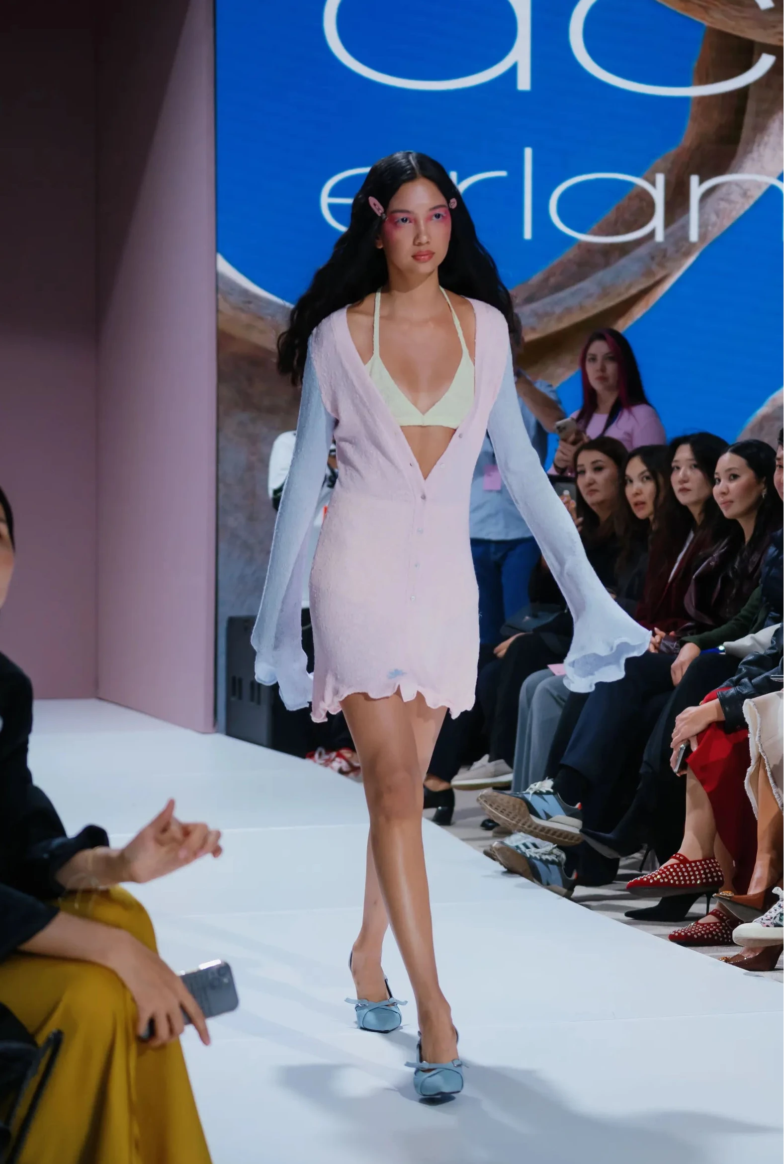 Мини-платье с показа коллекции "Весна–Лето 2026", воплощающее лёгкость, игру и женственное настроение. Модель выполнена из мягчайшей вискозы — материал нежно соприкасается с кожей, создавая ощущение комфорта и воздушности.