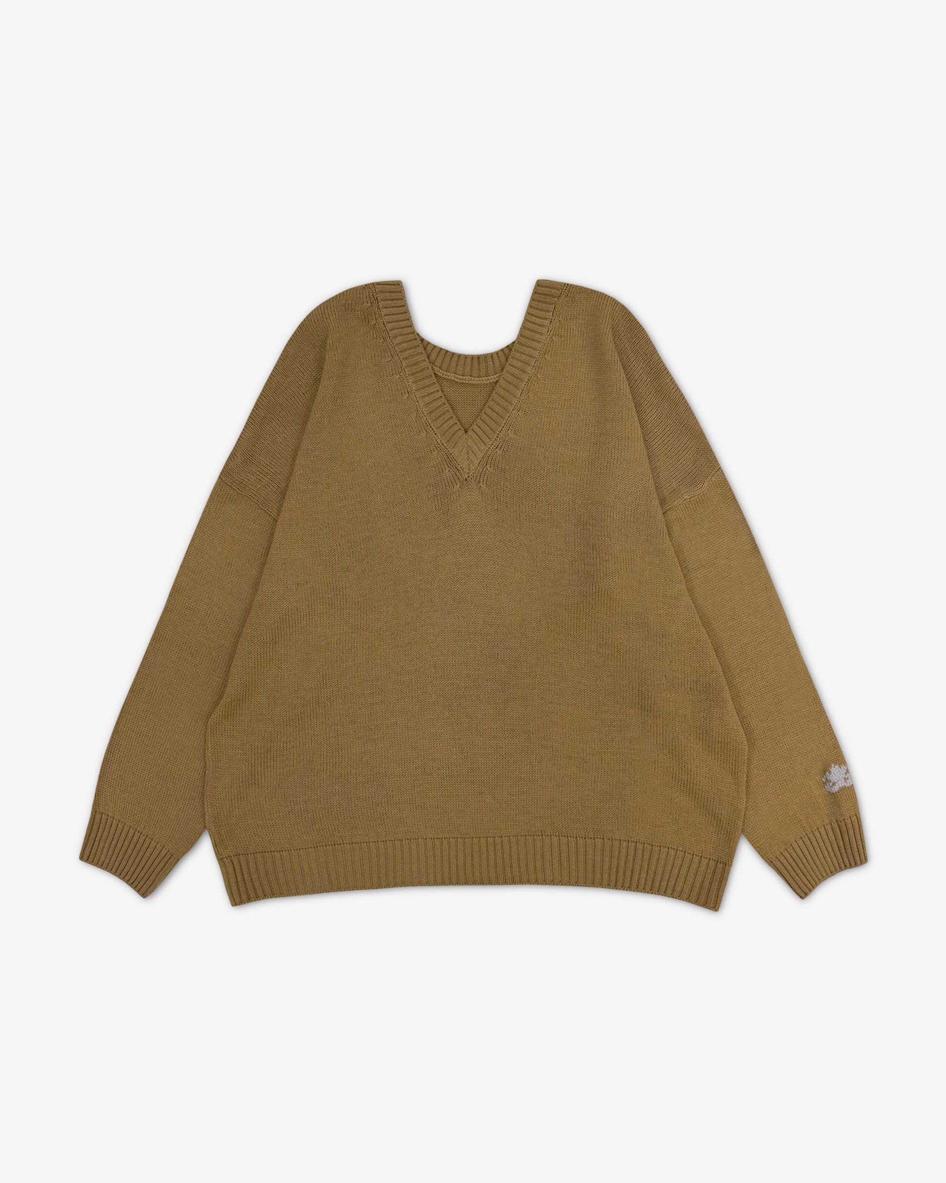 Свитер двусторонний и имеет два варианта выреза — круглый и V-образный. Его можно носить по-разному, выбирая сторону в зависимости от настроения и образа. Свободный крой со спущенной линией плеча и оверсайз-посадка создают ощущение уюта, расслабленности и современной элегантности.